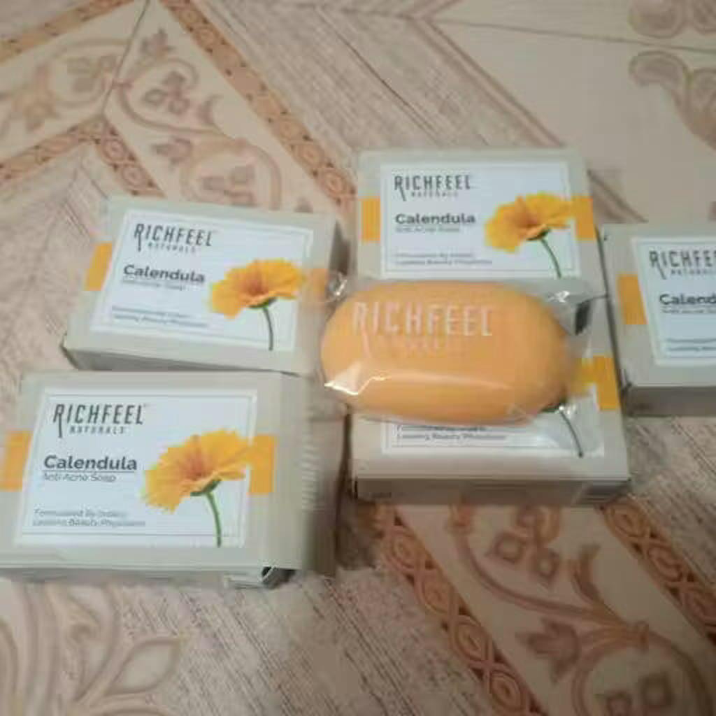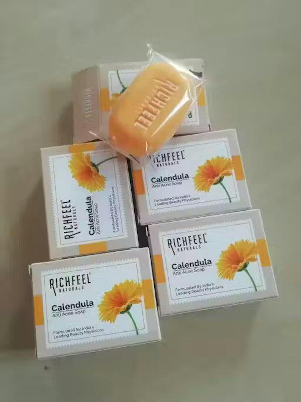 Richfeel Calendula Anti-Acne Soap - multitasking soap that fights acne, fades stubborn spots, and restores your skin’s natural brightness—all in one gentle, skin-loving cleanse. It possesses antibacterial and anti inflammatory properties for sensitive, oily and all skin types.