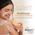 The secret behind all this is the Hero ingredient Calendula. Derived from the nature's finest marigold flowers, this ingredient has soothing properties that heal acne, reduce dark spots, stop acne from reappearing and most importantly brighten the skin. The formula of this soap is researched and developed passionately by India’s OG beauty experts keeping in mind uniqueness of Indian skin and climate. The formulation of the soap therefore is extremely gentle on the skin but tough on breakouts.