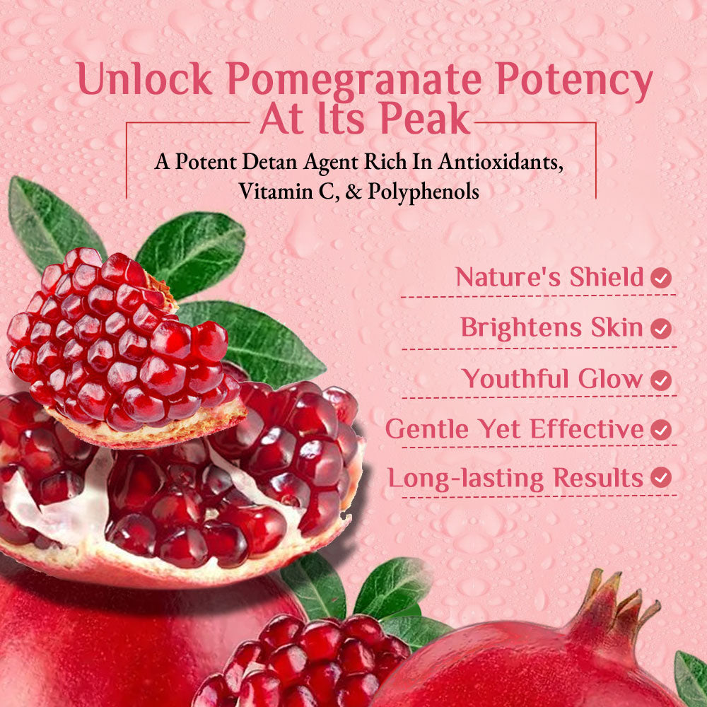 This intensive de-tanning kit works at multiple levels to revive tired, sun-damaged skin. It gently sloughs off dead skin cells, unclogs pores, and removes excess oil and impurities that cause dullness. Enriched with Pomegranate, a known skin-brightener packed with antioxidants, it helps reduce pigmentation, smoothen rough patches, and enhance overall tone and texture. Each step—from cleansing to hydration—restores skin vitality, leaving it visibly brighter, softer, and more balanced.