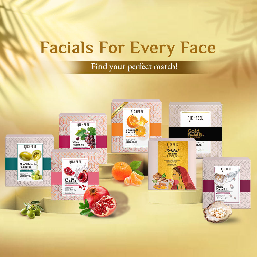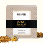 Richfeel Gold Facial Kit with Gold Foils, Berberis Aquifolium, and Echinacea Extract delivers instant radiance, reduces dullness, and helps even out skin tone. Expertly formulated by India’s OG beauty experts, this 5-step facial routine exfoliates dead skin cells, purifies pores, and deeply nourishes—leaving your skin glowing, soft, and visibly rejuvenated. Packed with antioxidant-rich botanical extracts, it revives lost luminosity and helps defend against signs of aging and future dullness.
