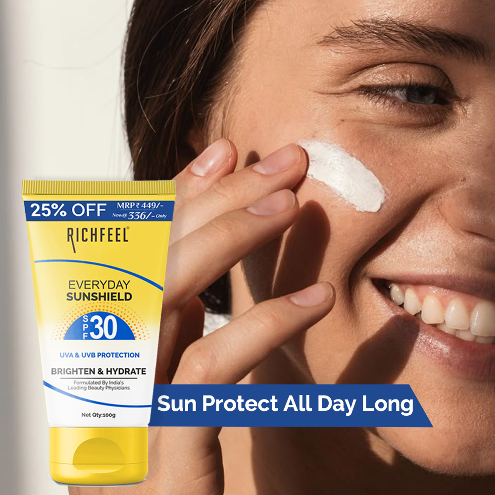 Why Choose Richfeel Naturals Everyday Sunshield SPF 30? ✔ SPF 30 Broad-Spectrum Protection – Shields against harmful UVA & UVB rays ✔ Lightweight & Non-Greasy – Absorbs quickly without leaving a sticky residue ✔ Enriched with Natural Ingredients – Nourishes and hydrates your skin ✔ Prevents Sun Damage – Helps reduce tanning, sunburn, and early signs of aging ✔ Suitable for All Skin Types – Gentle on sensitive skin and ideal for daily use